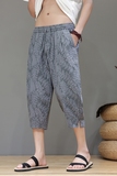 风潮大码提花棉麻休闲裤直筒宽松痞帅男款七分裤D934P60