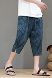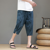 风潮大码提花棉麻休闲裤直筒宽松痞帅男款七分裤D934P60