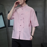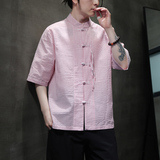 首页 > 杭州 > 男装 > 衬衫 > 2025男款风条纹衬衫夏季盘扣衬衣棉麻短袖D917P50 3:4主图