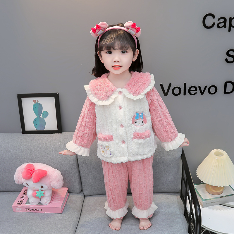 女小童睡衣套装秋冬2025新款女卡通加厚家居服套装儿童冬装潮P70