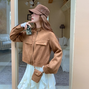 首页 > 杭州 > 女装 > 短外套 > 现货2025秋韩版麂皮绒拼皮休闲百搭翻领短款外套8016P179K259 3:4主图