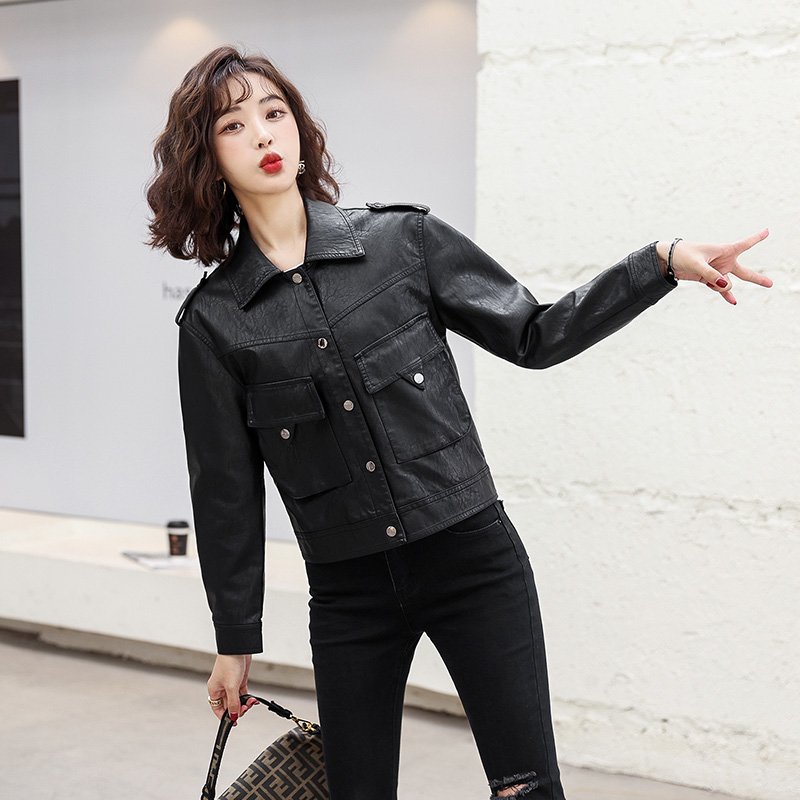 毛呢外套2018年秋季潮流简约POLO领个性显瘦纯色长袖修身百搭