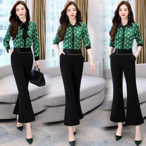 现货气质套装女夏2024新款洋气减龄收腰显瘦拼接短袖微喇裤两件套