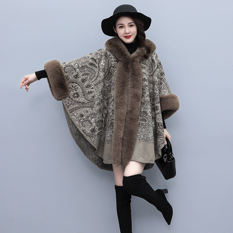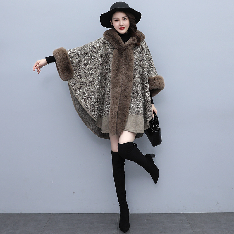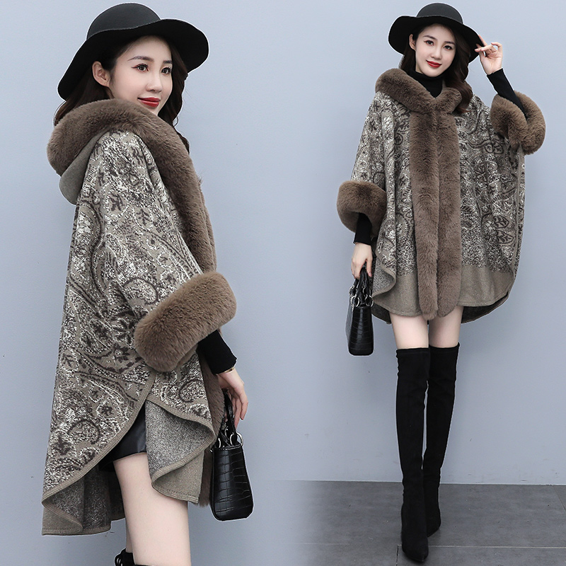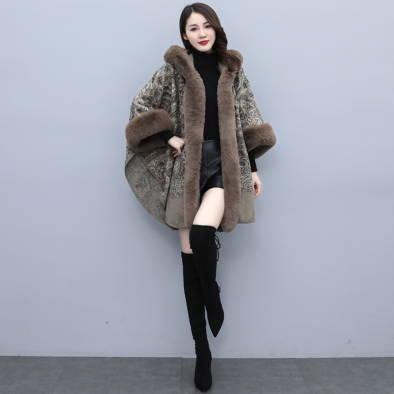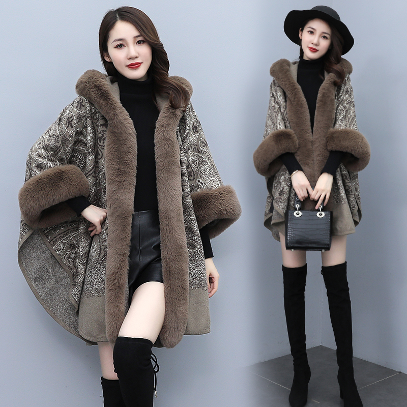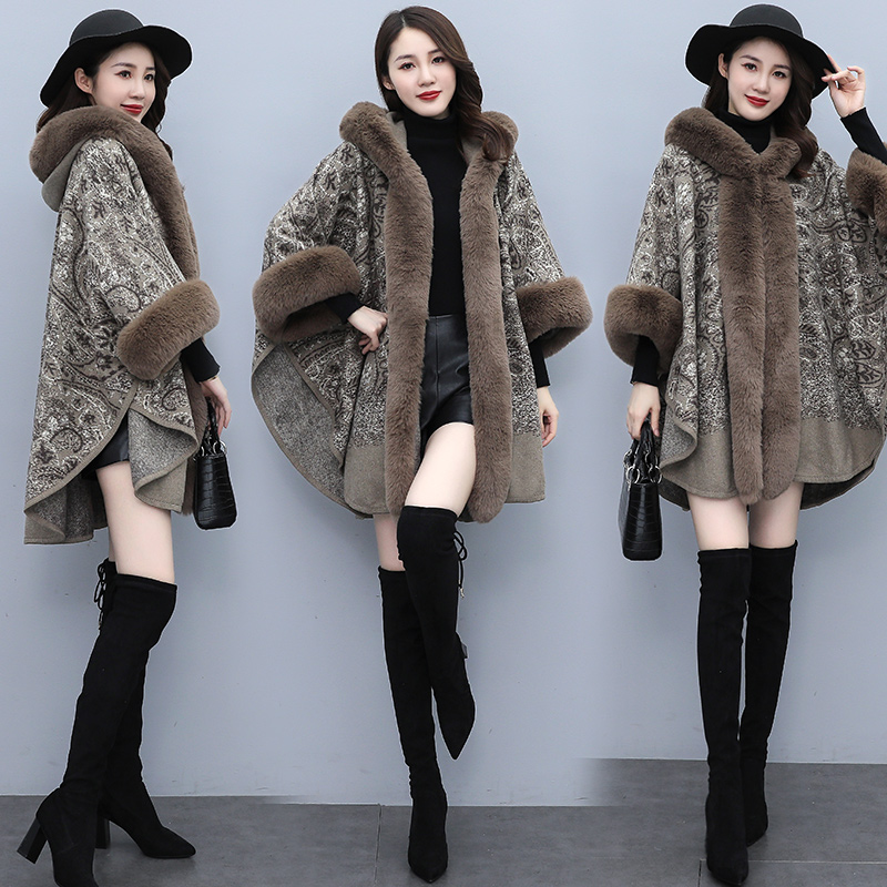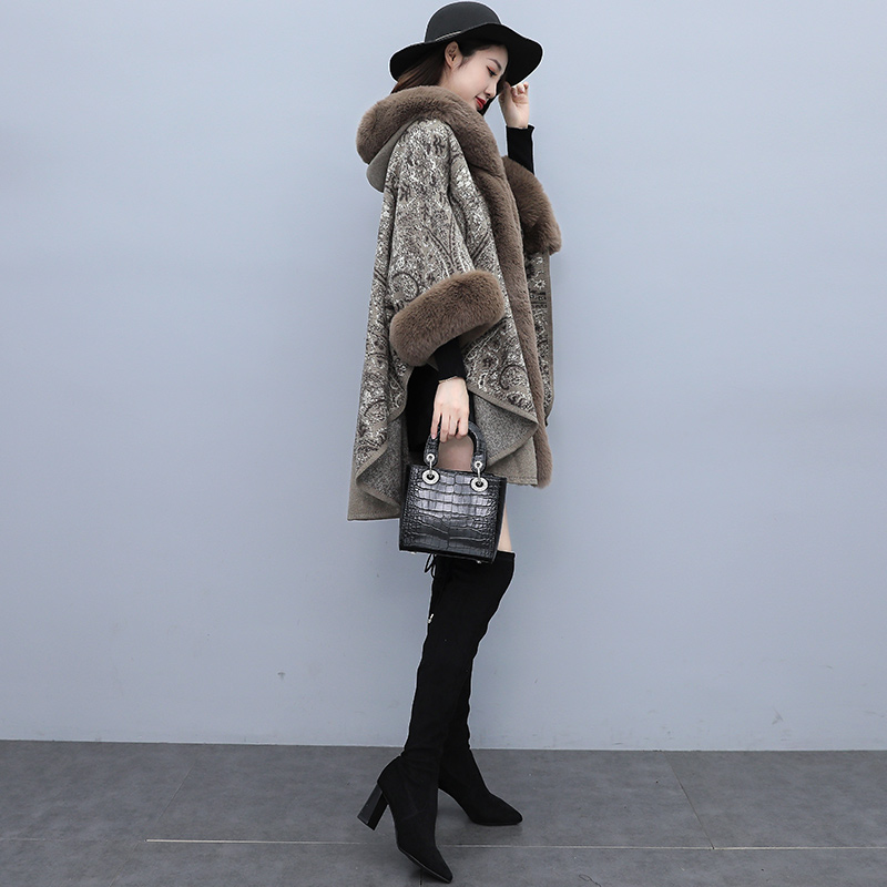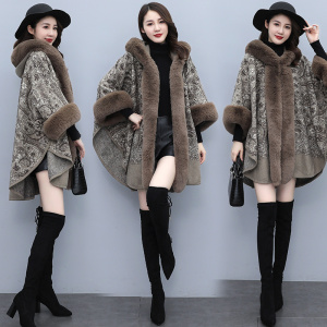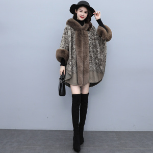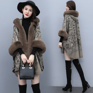 羽绒服2020年新款斗蓬中长款配真毛冬季外套