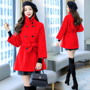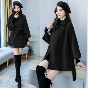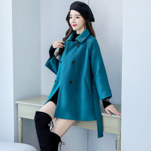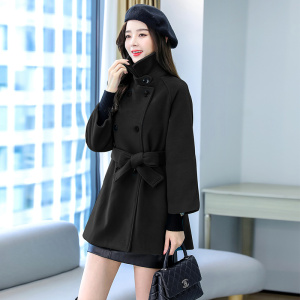 2019年冬季中长款修身显瘦百搭潮流简约个性长袖POLO领毛呢外套